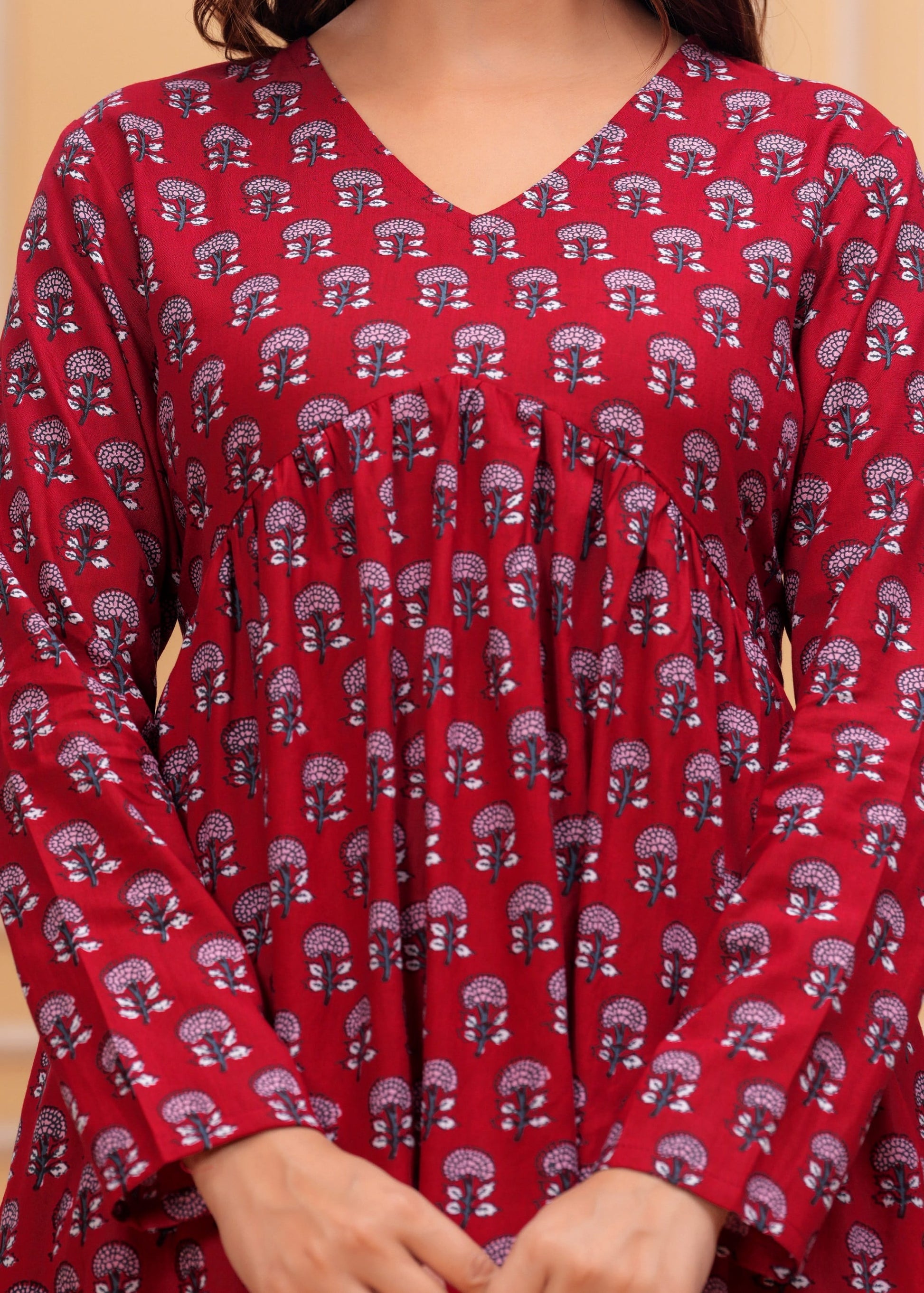 Maroon Cotton Printed Top – Everyday Casual Wear