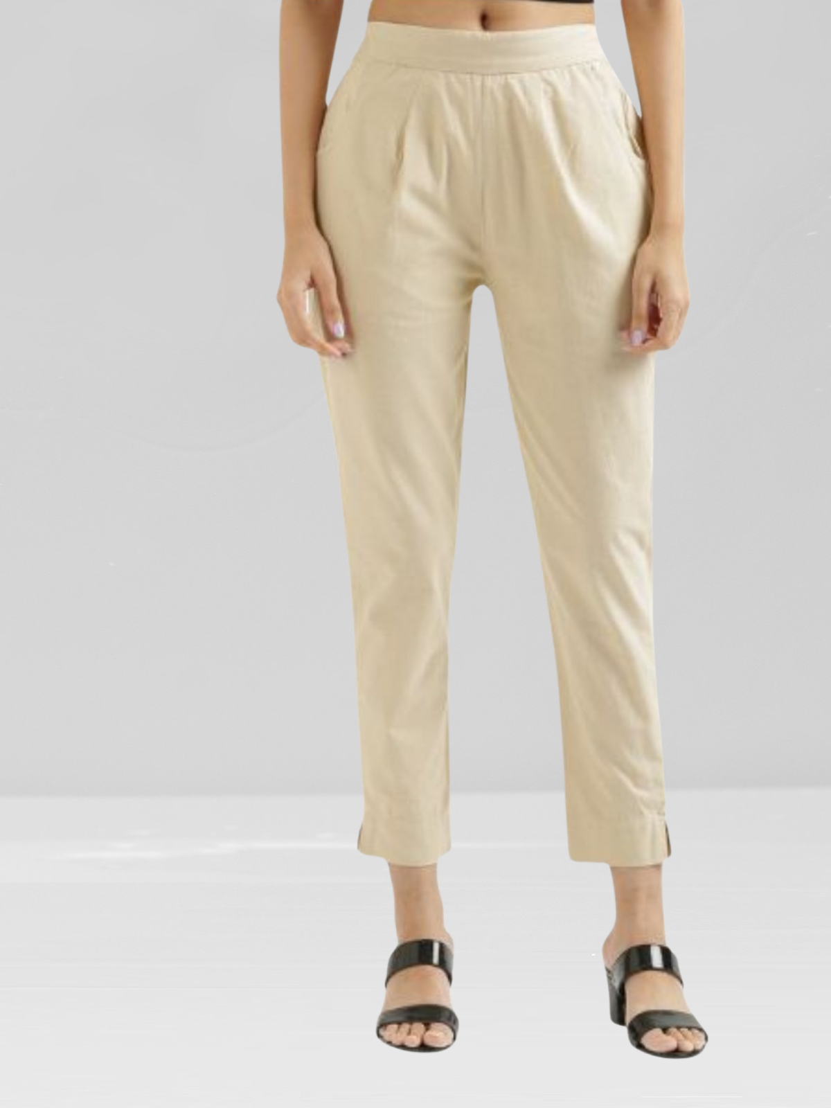 Upgrade your everyday wardrobe with these Off White Cotton Flex Pants designed for all-day ease and effortless styling. Crafted from breathable, slightly stretchable cotton flex, these pants feature functional side pockets to keep your essentials within reach. The clean, straight silhouette and ankle-grazing length pair beautifully with kurtas, tops, or tunics, making them perfect for work, travel, or relaxed weekends.